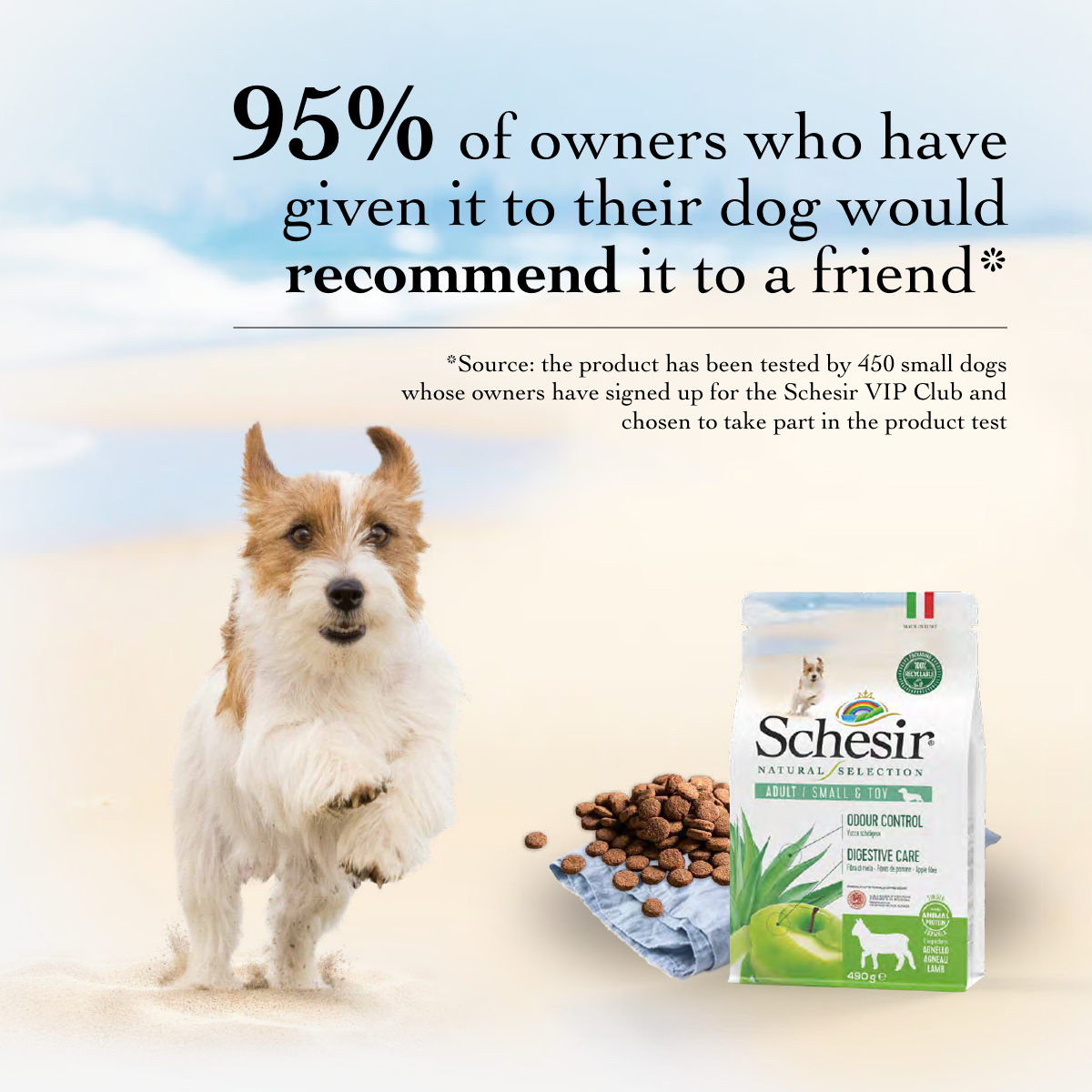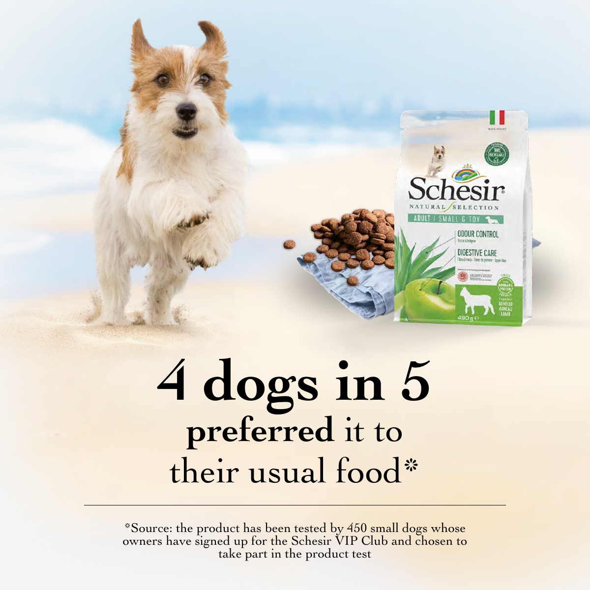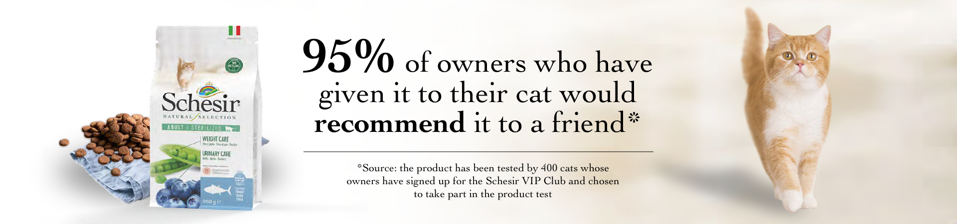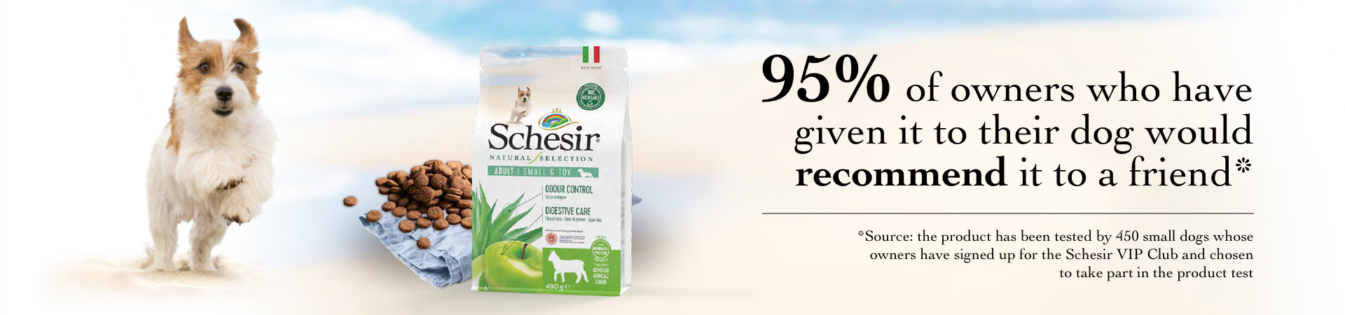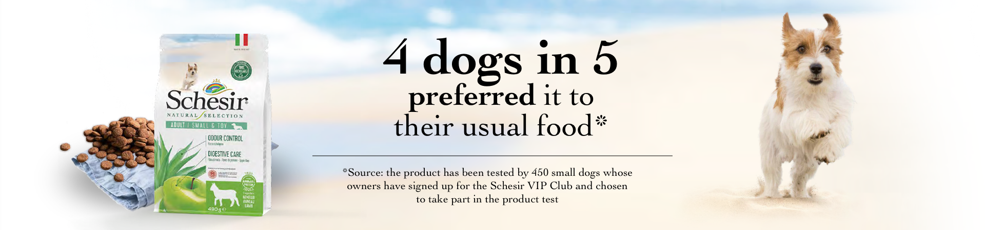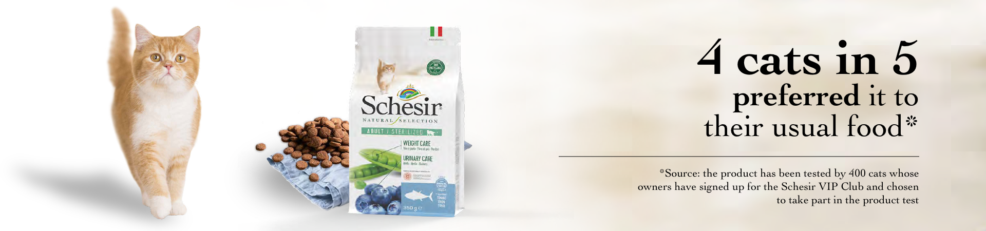 My dog was very happy with Schesir kibble and really didn't want his usual product. Now I have to shop around for it because he doesn't want the other one any more.