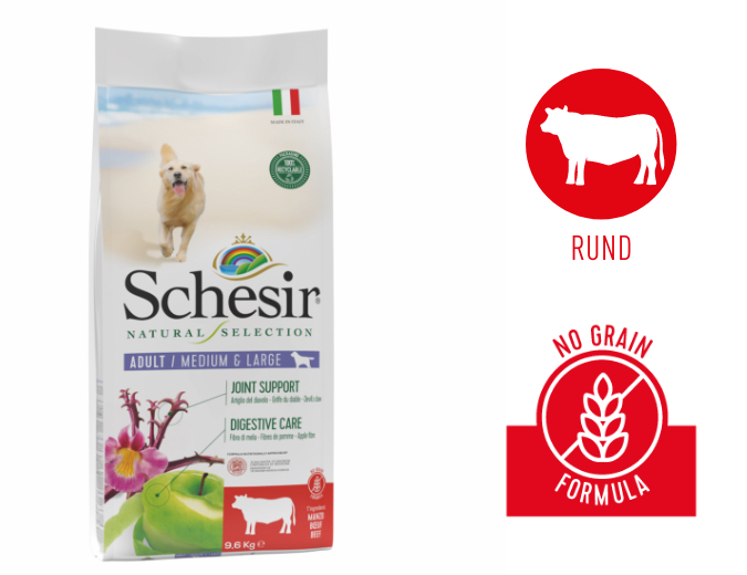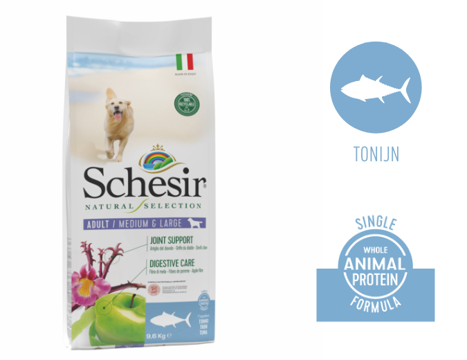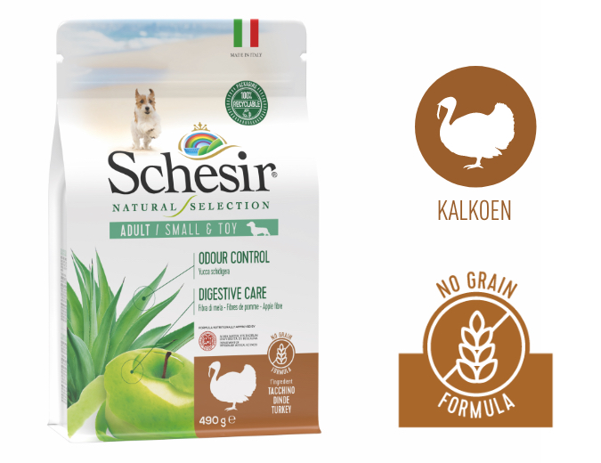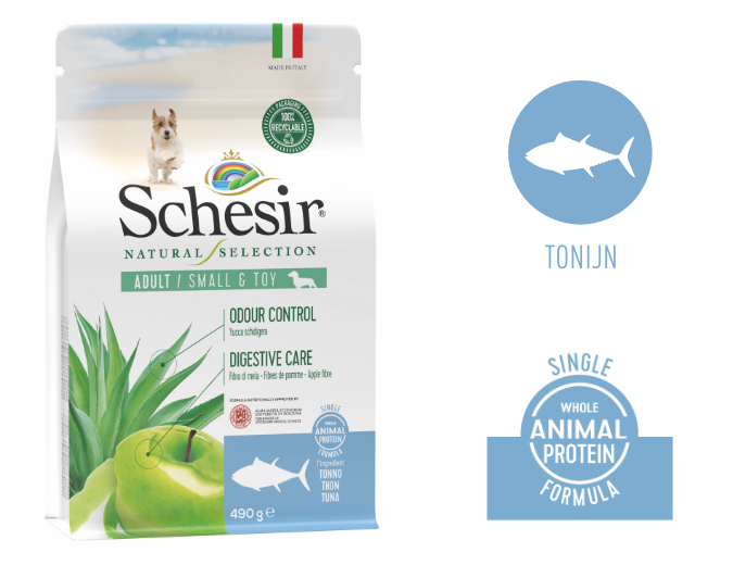 De spijsvertering vraagt om speciale aandacht, ongeacht de grootte van uw hond. Vanwege de lengte van het spijsverteringskanaal hebben onze viervoetige vrienden behoefte aan voer dat makkelijk verteerbaar is. Juist daarom heeft Schesir de appelvezel geselecteerd voor al zijn recepten speciaal voor honden. Het betreft een ingrediënt dat rijk is aan gunstige eigenschappen. Met name omdat het de regelmaat van de darmwerking bevordert en het welzijn van de bacteriën in de darmflora ondersteunt. Naast de appelvezel, het functionele basisingrediënt van alle referenties, heeft Schesir specifieke natuurlijke ingrediënten gevonden die in staat zijn om het welzijn van honden te bevorderen, al naar gelang hun leeftijd en hun grootte.